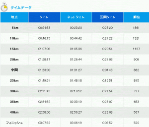 【速報】大阪マラソン 2013年 2013年10月27日 大会結果 ウルフです。 2013年 大阪マラソンの順位、タイム 結果速報 鳩印からはトパンガさんと、あらたくさんが出場しています。 速報は、『ランナーズアイ』でゼッケン番号か、名前を入力すれば見れます。 トパンガさんのゼッケン番号 666 あらたくさんのゼッケン番号 1419 大阪マラソン2013_トパンガ 大阪マラソン2013_アラタク トパンガさん 23位! 02:3050 あらたくさん 520位! 03:06:19 タグ:大阪 マラソン 「尼崎選手権結果」 「2013年10月14日兵庫マスターズ陸上選手権結果」 “【速報】大阪マラソン 2013年” への3件のフィードバック 大阪マラソンお疲れ様でした。 動画見ましたが、あれ、本とにアラタクさんですか?違う様な気がするのは気のせいでしょうか?名前で検索してもでてこないんですが…(^_^;) 返信 あたらくさんの動画差し替えました。 タイム的に見ると最後に右の方にフラフラっとしたのがあらたくさん? 返信 黄色のノースリーブに黒のショートパンツの 真ん中走っててゴールの時に両手挙げてるのが私です。 なんとか最後まで頑張れました! 返信 コメントを残す 返信をキャンセルする。 名前 Submit Comment キャプチャコード *