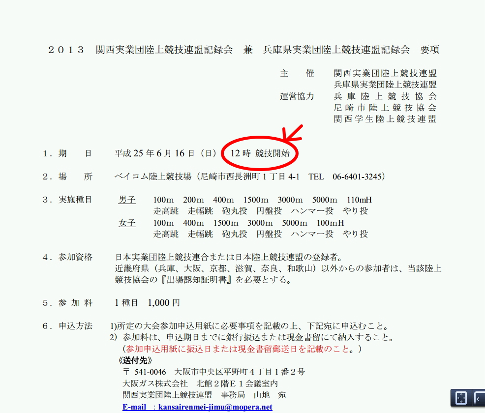 関西実業団陸上記録会 兼 兵庫実業団記録会の結果